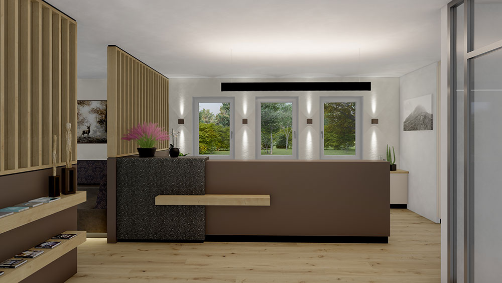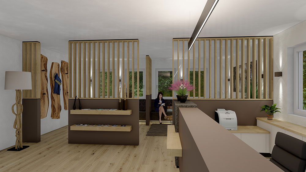 Individualität und Handwerkskunst: Mit unserem Partner bieten wir ihre individuellen Vorstellungen zur Praxis-Einrichtung und Ausstattung von Behandlungszimmern. Kreative Ideen von Empfangspulten und Warteräume werden in 3D Visualisierungen oder Rendering zur Wahrnehmung von Raumgefühl und Vorstellungsvermögen unterstützt.